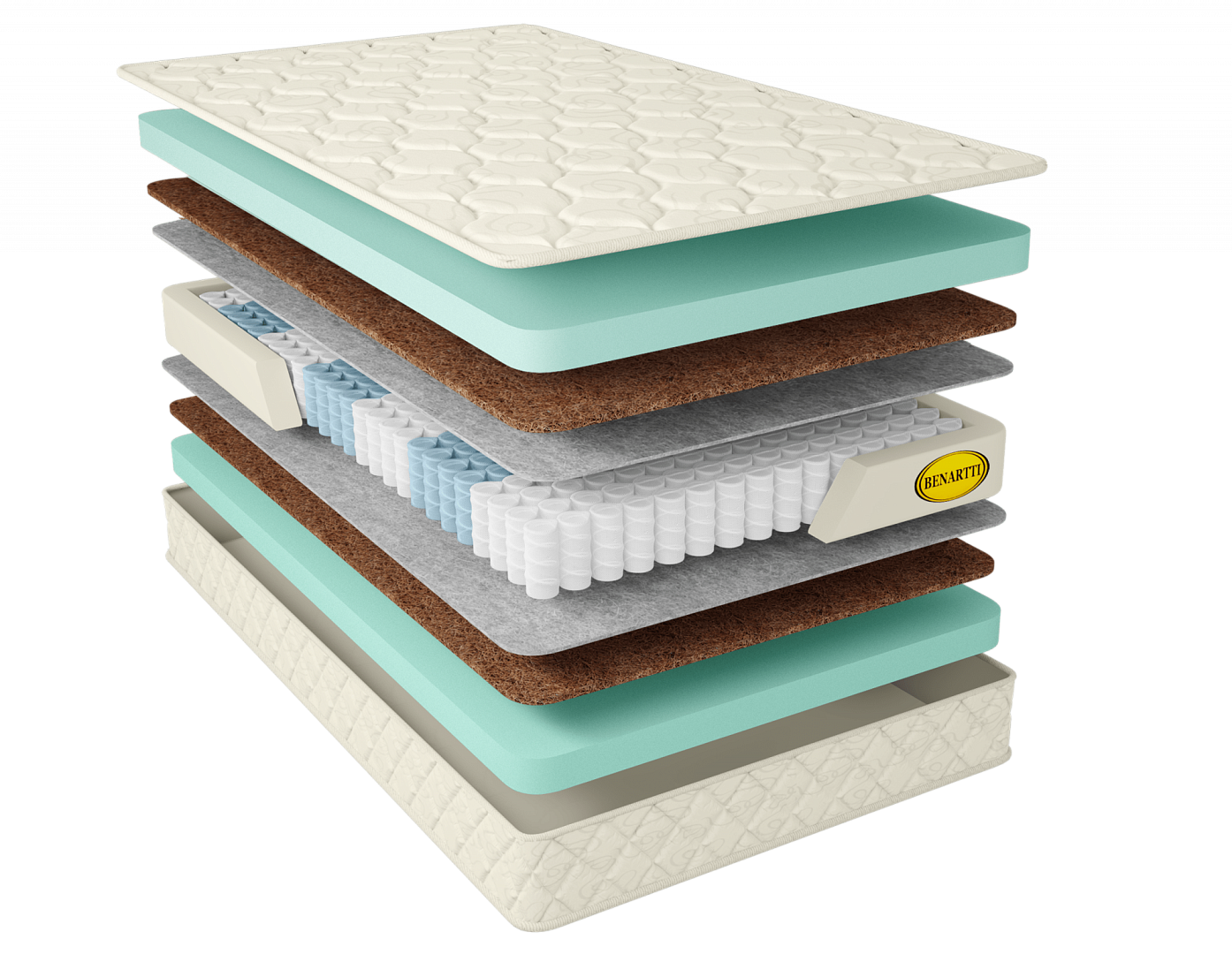 Для дополнительной защиты пружинного блока добавлен изоляционный слой из войлока, разделяющий и защищающий наполнители матраса и пружинный блок. С каждой стороны расположен слой кокосовой койры толщиной 1 см , придающий дополнительную жесткость и долговечность матрасу и поверх слой искусственного латекса высотой 5 см, обладающий анатомическим эффектом и износостойкими свойствами. Чехол матраса, выполнен из хлопкового жаккарда, простеганного на экологически чистом материале Hollcon. Ткань обработана специальной антибактериальной пропиткой SANITIZED (Швеция). Пропитка обеспечивает полное уничтожение плесневых грибков, не дает развиваться микроорганизмам, пылевым клещам и микробам.