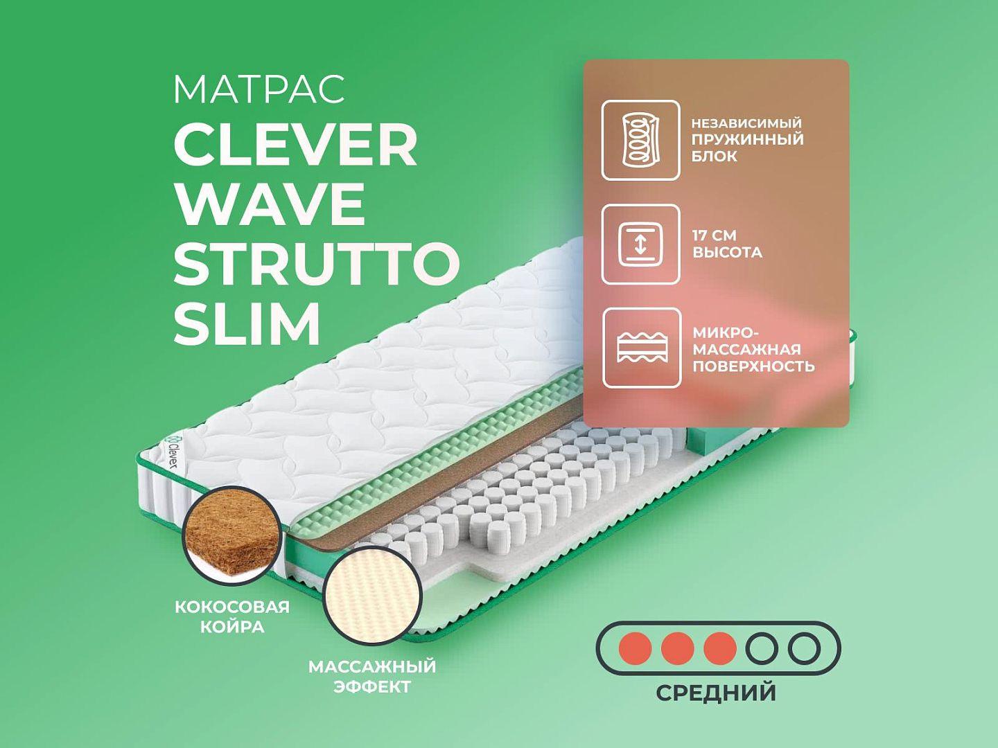 Интернет-магазин Dream-Expert.ru представляет матрас Clever Wave Strutto Slim 200x195 производства фабрики Clever. Купить данную модель — значит обеспечить себе здоровый позвоночник и комфортный сон на долгие годы.