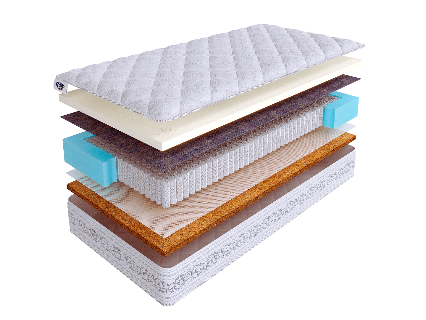 Одна сторона матраса выполнена из толстого слоя кокосовой койры и обладает высокой жесткостью. Кокосовая койра — природный материал, обладающий такими качествами, как прочность, долговечность и отличная воздухопроницаемость. Другая сторона модели изготовлена из материала с эффектом памяти — Memory Foam. Это высокоэластичный наполнитель, идеально подстраивающийся под контуры тела спящего человека. Memory способствует полному мышечному расслаблению и улучшает кровообращение, обеспечивая здоровый и комфортный сон.