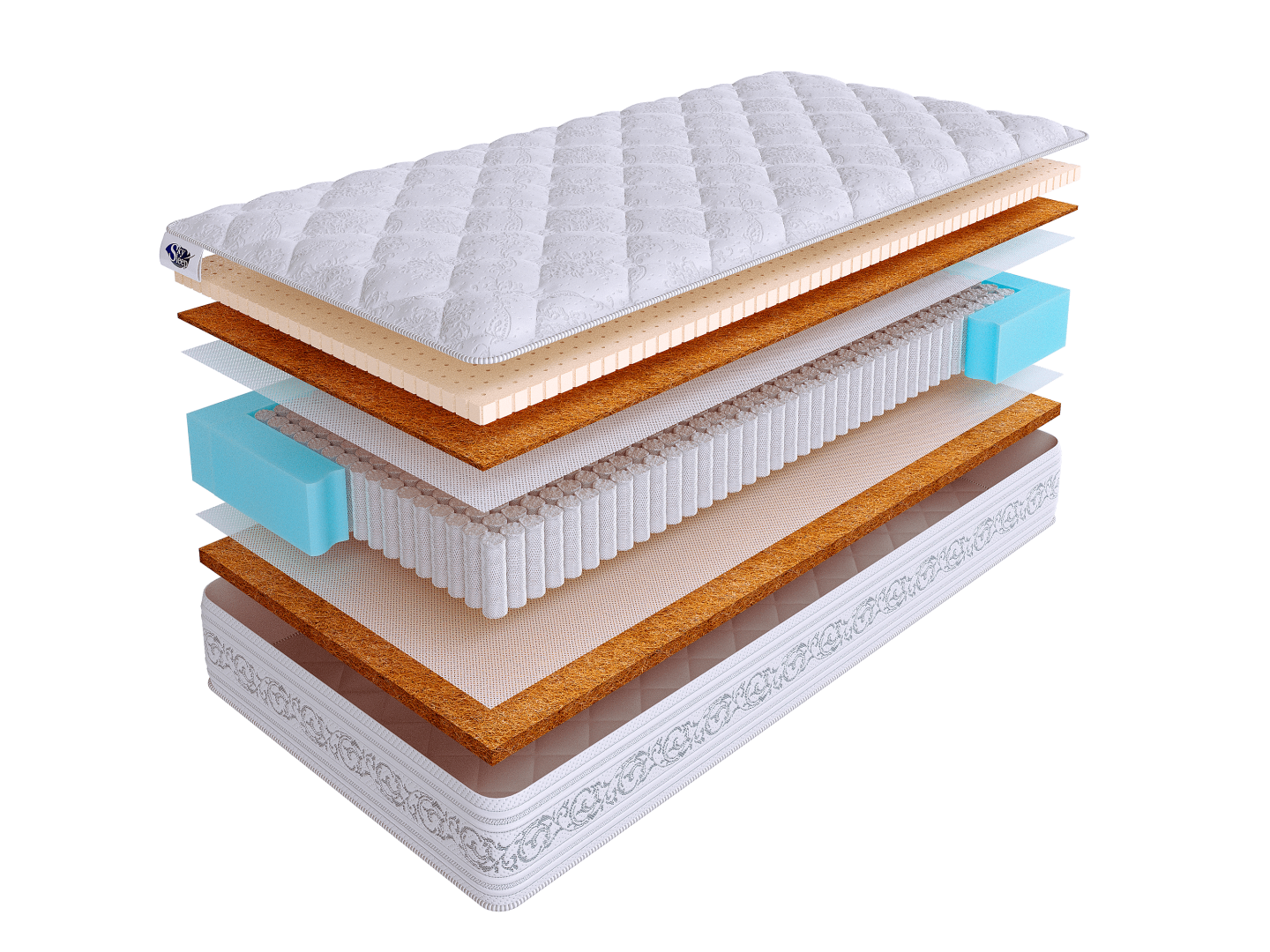 Одна сторона матраса выполнена из толстого слоя кокосовой койры и обладает высокой жесткостью. Кокосовая койра — природный материал, обладающий такими качествами, как прочность, долговечность и отличная воздухопроницаемость. Другая сторона модели изготовлена с применением слоя натурального латекса толщиной 1 см и имеет жесткость выше средней. Латекс – упругий, высокоэластичный материал, обладающий высокими адаптационными свойствами. Он максимально точно подстраивается под изгибы тела спящего человека, создавая оптимальный уровень анатомического эффекта. Слой латекса позволяет смягчить поверхность матраса и сделать сон еще более комфортным.