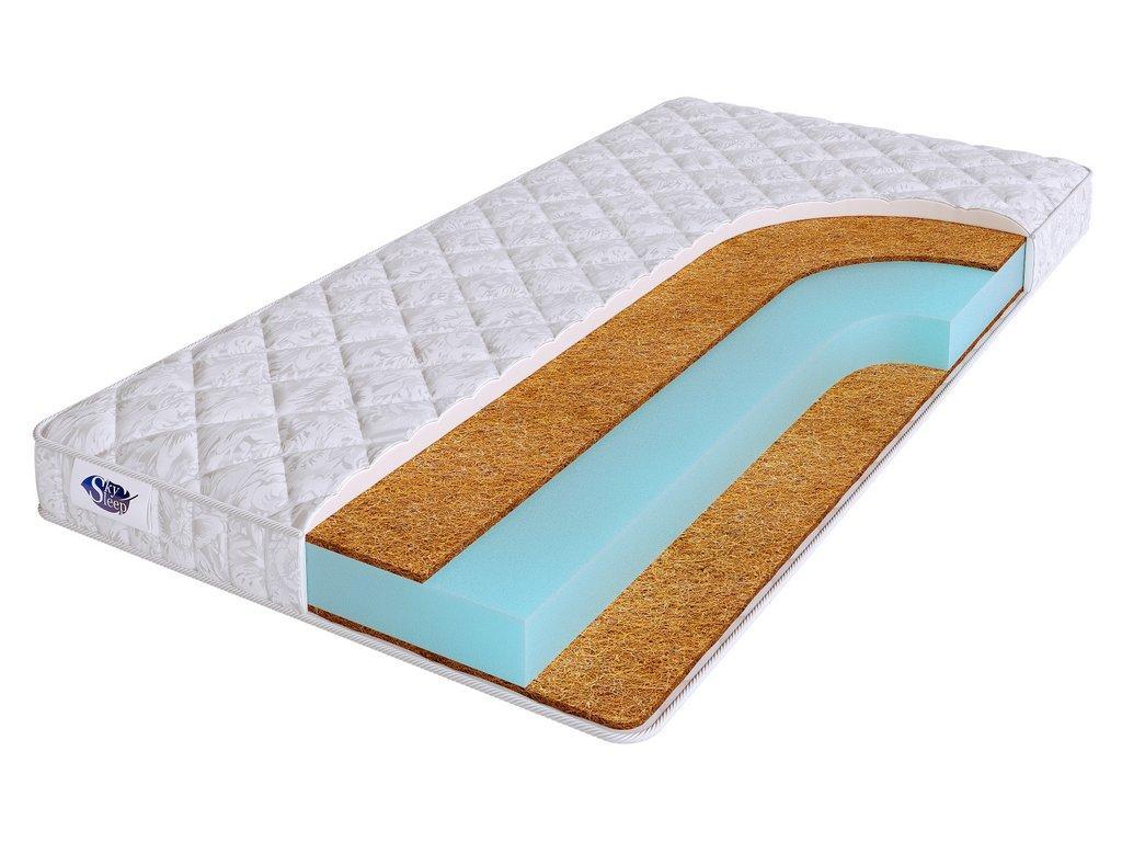 Слой кокосовой койры, расположенный с двух сторон матраса, придает поверхности жесткость и упругость, обеспечивает ортопедичность спального места.