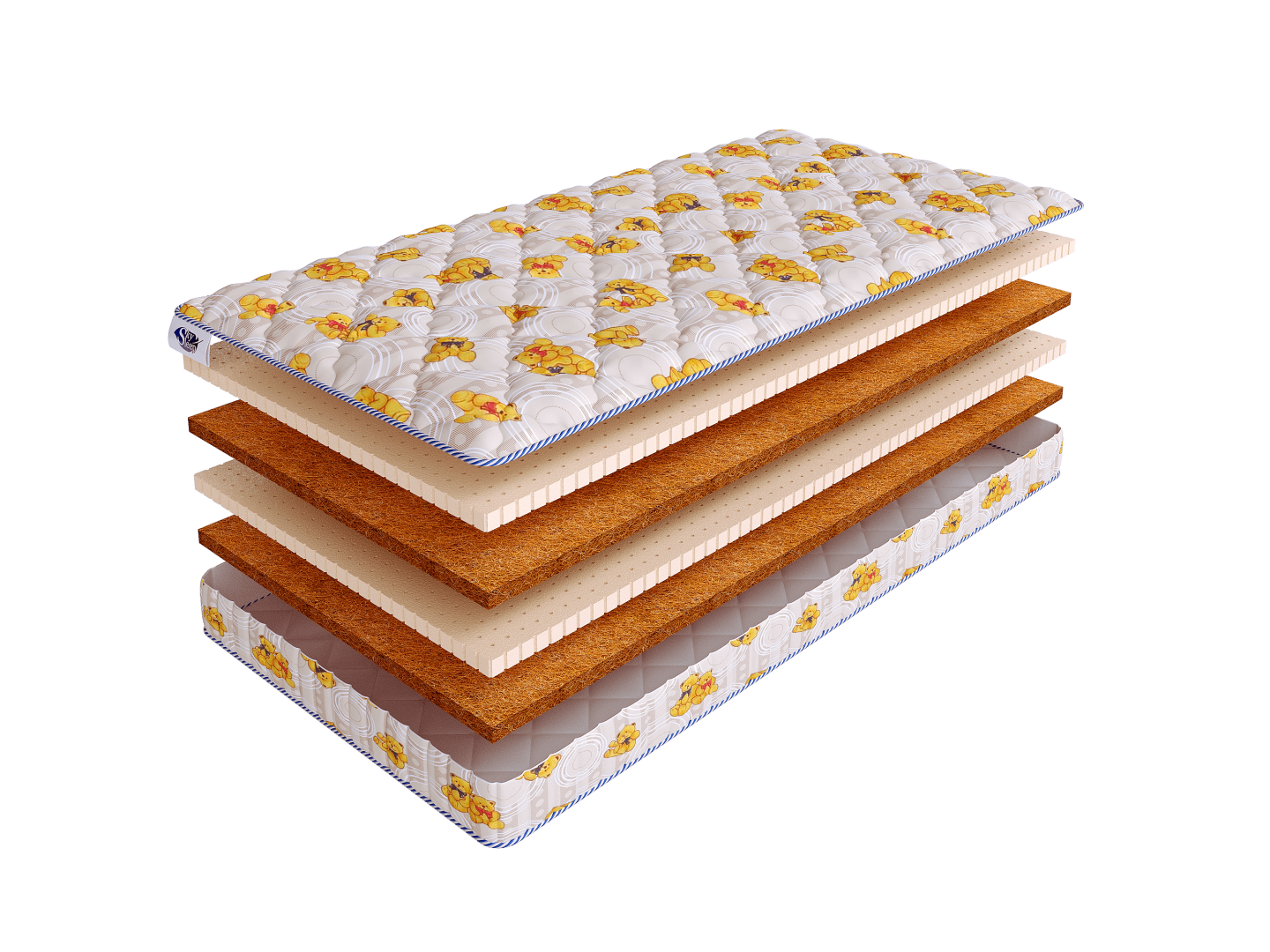 Беспружинный детский матрас KIDDY Mix выполнен из экологичных материалов и обладает разным уровнем жесткости сторон. Чередование слоев натурального латекса и кокосовой койры позволяет создать оптимальный уровень анатомической поддержки детского позвоночника во время отдыха. Сторона, выполненная из кокосовой койры обеспечивает жесткую поддержку спины, что положительно сказывается на правильном формировании детской осанки, а натуральный латекс смягчает поверхность и делает сон на матрасе невероятно комфортным. Оба материала отлично вентилируются, что предотвращает скопление влаги и пыли в матрасе и позволяет поддерживать микроклимат спального места в идеальном состоянии.