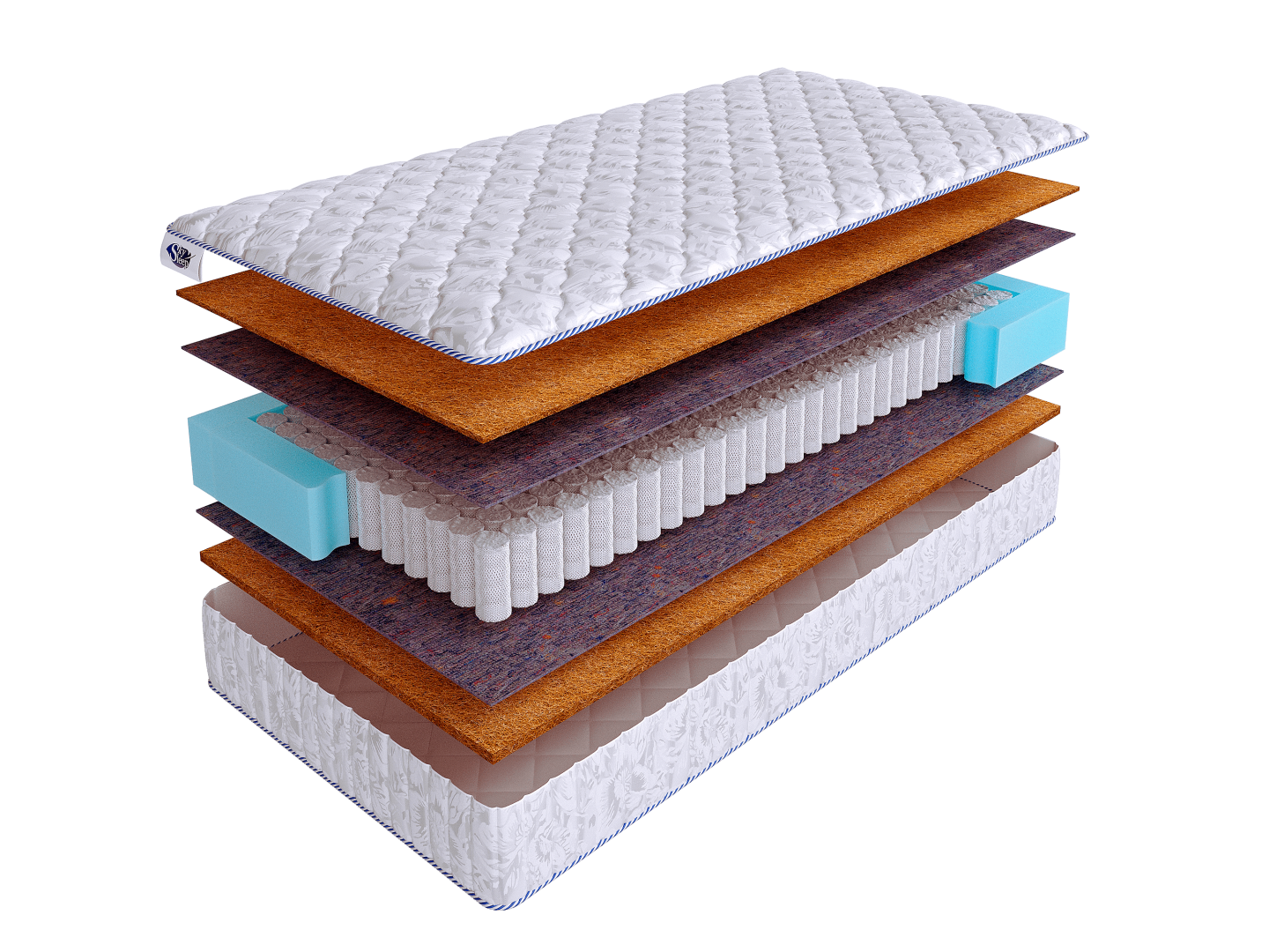 Его основным наполнителем является латексированная кокосовая койра. Это природный материал, обладающий такими качествами, как прочность, упругость и отличная воздухопроницаемость. Слой кокоса расположены по обеим сторонам модели и обеспечивают надежную ортопедическую поддержку для всего тела.