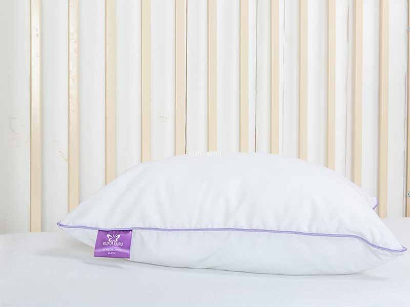 Оптимальная высота 5 см обеспечивает идеальное положение шейных позвонков во время сна. Дополнительный комфорт создается за счет воздухопроницаемых свойств наполнителя. Человеку комфортно в любое время года, так как сохраняется естественный температурно-тепловой режим. Чехол выполнен из приятного на ощупь хлопок.