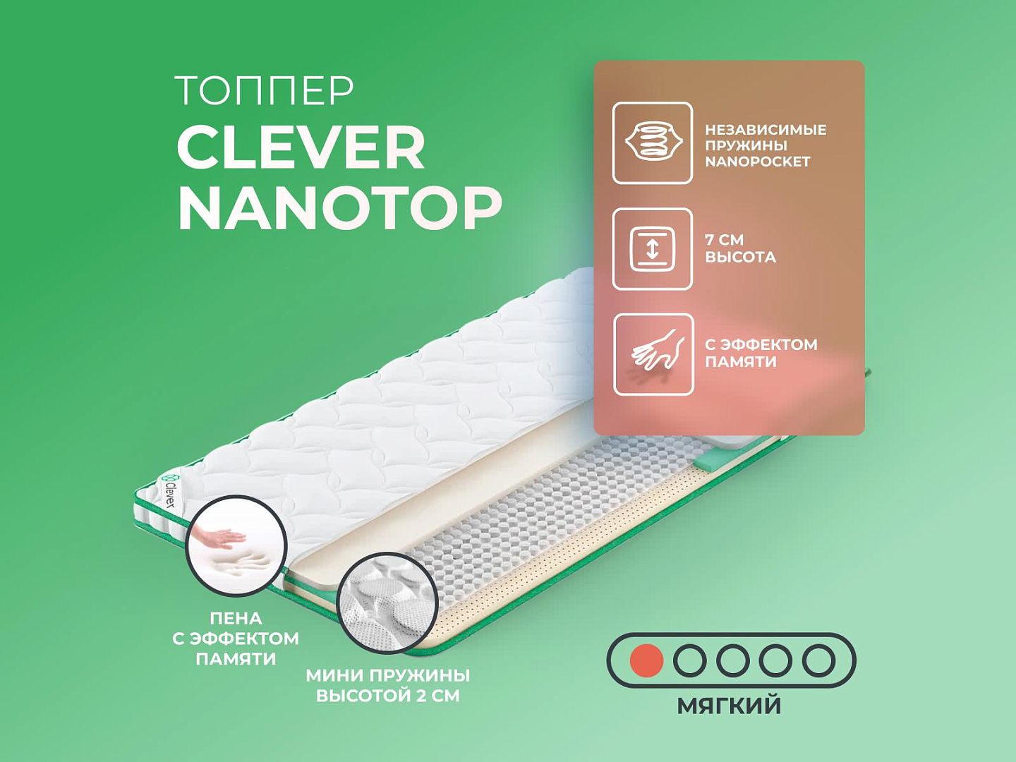 Интернет-магазин Dream-Expert.ru представляет матрас Топпер Clever NanoTop производства фабрики Clever. Купить данную модель — значит обеспечить себе здоровый позвоночник и комфортный сон на долгие годы.
